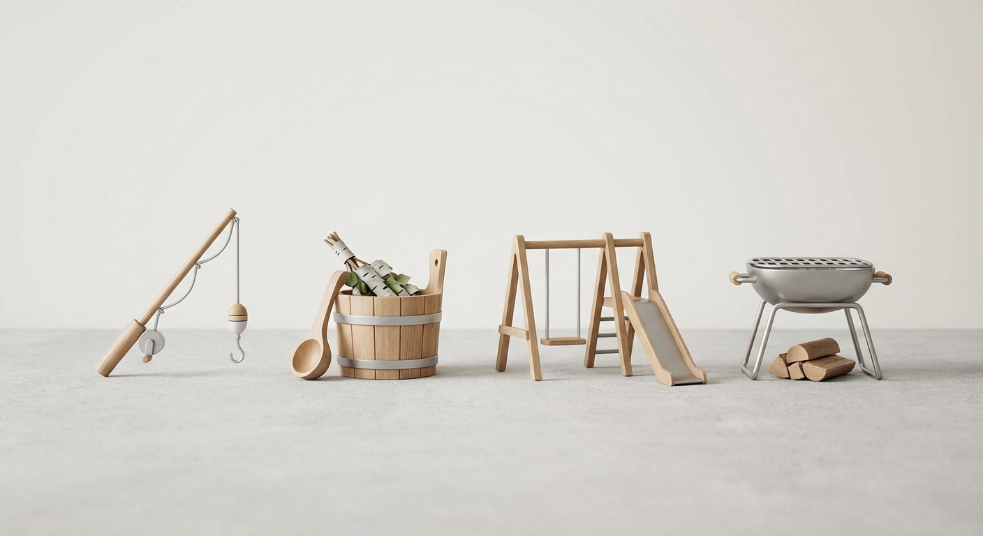 Рыбалка, баня, детская площадка и мангал — всё рядом, чтобы отдых на природе был удобным.