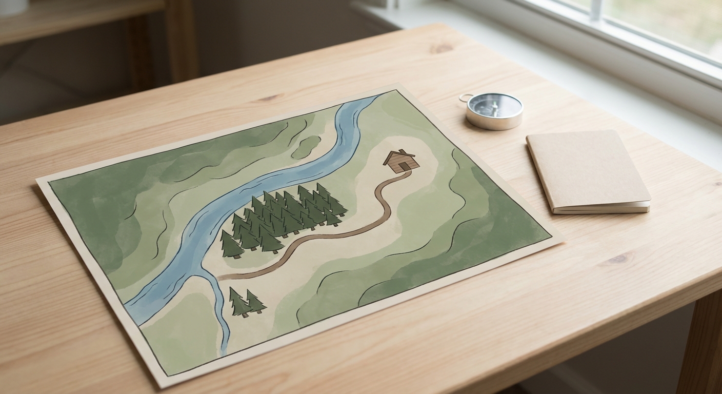 Точные координаты и въезд согласуем при бронировании. Ниже — ориентир на карте и схематичный вид местности.